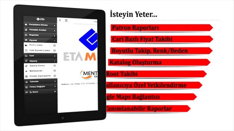 ETA:Mobil iOS-Android Uygulaması: ETA:Mobil iOS - Android uygulamasını kullanarak şirketinizin kapılarını mobil dünyaya açacaksınız.